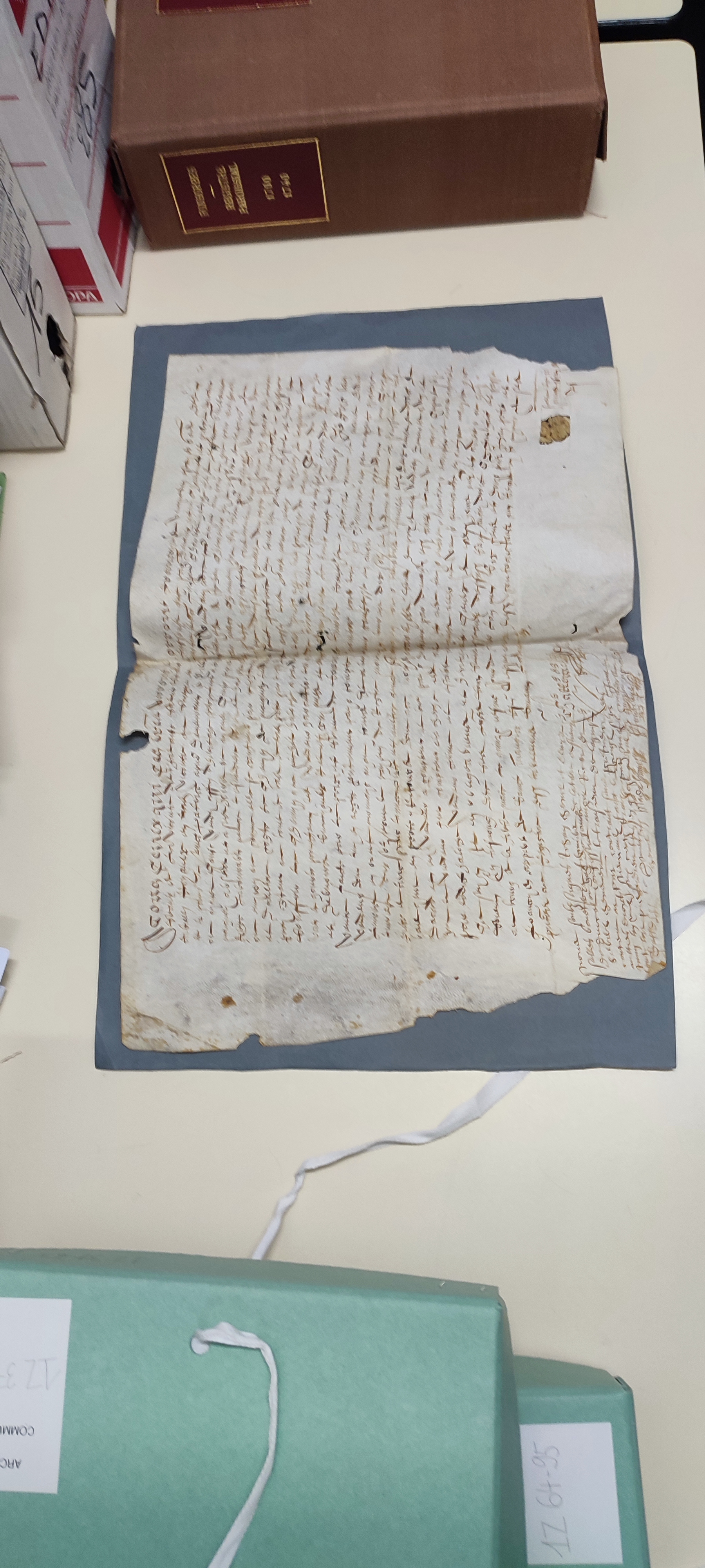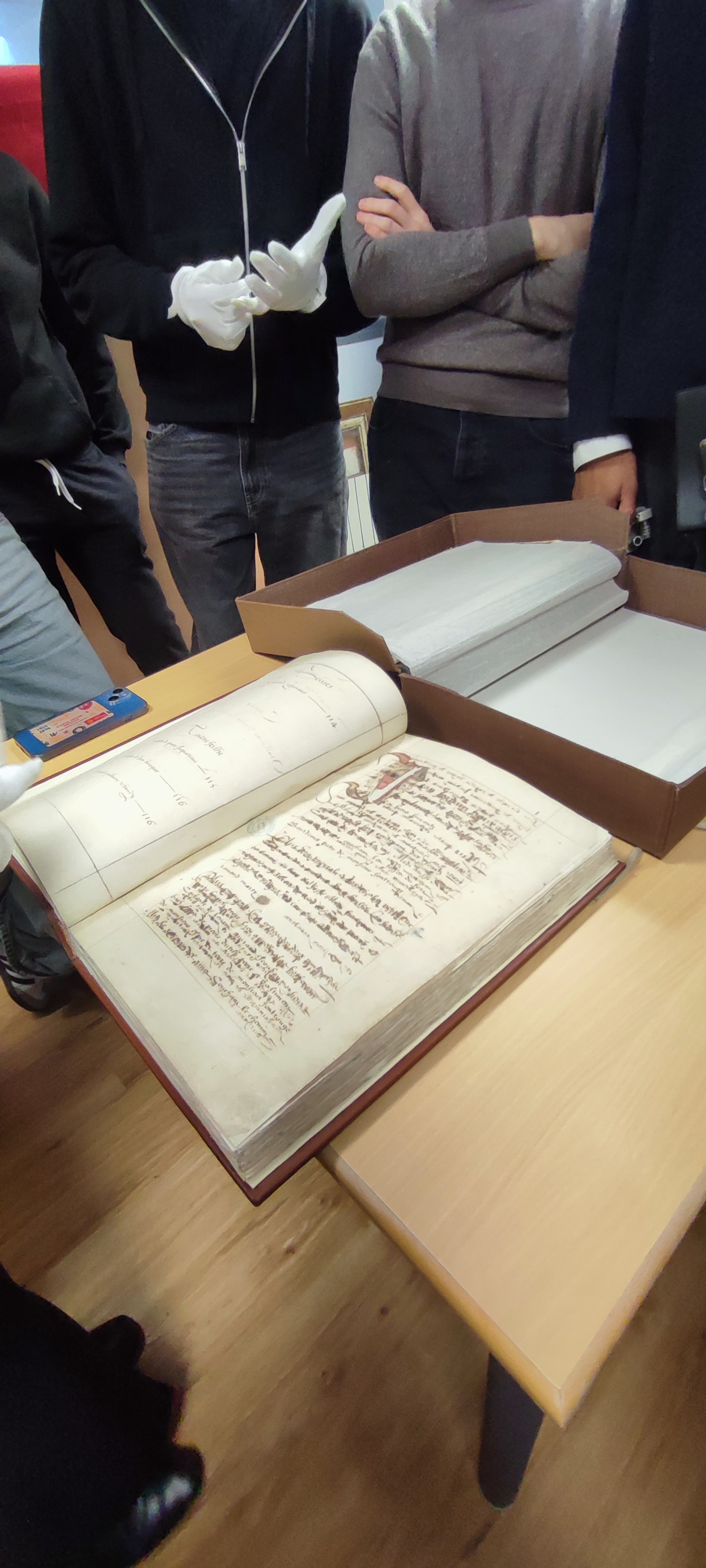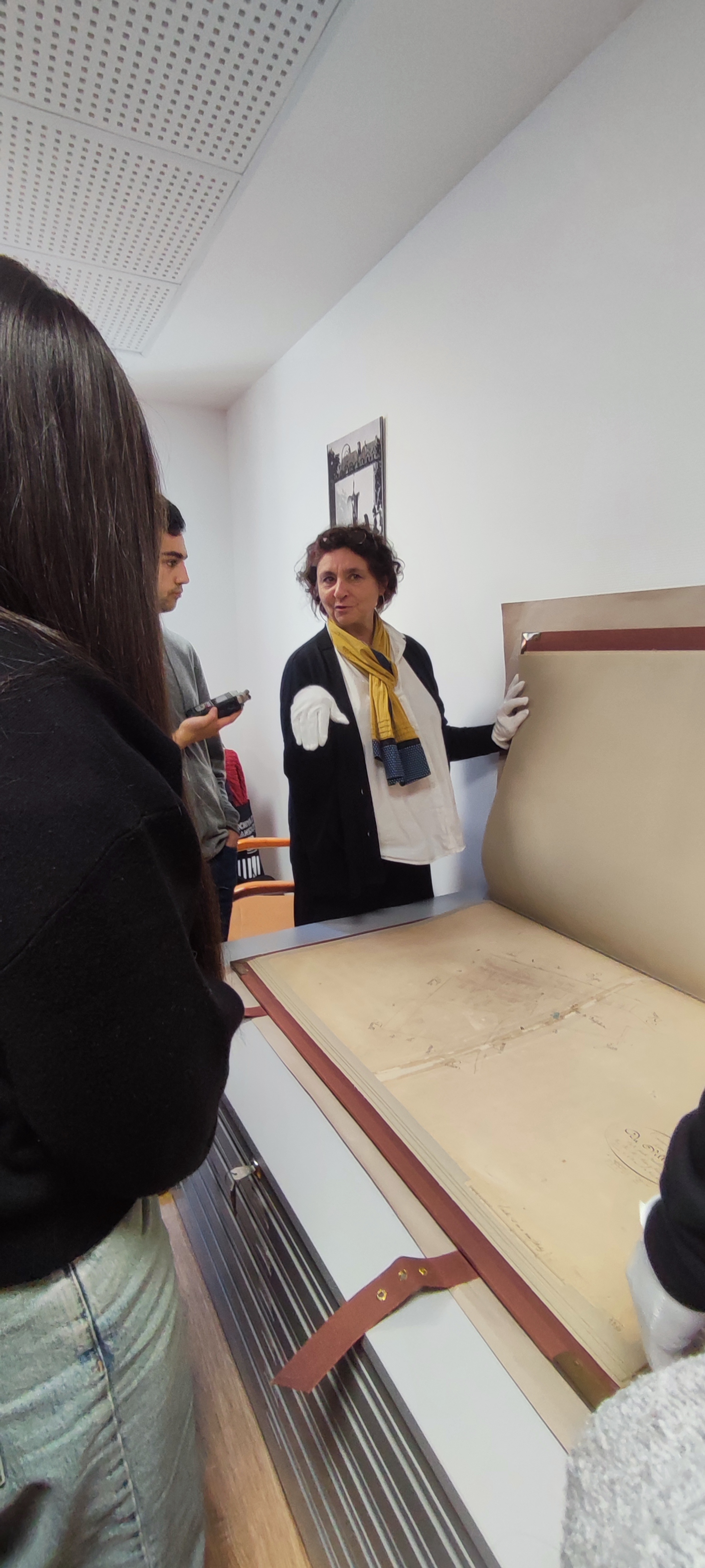 Dans un premier temps, Mme Martin a présenté son métier (études, débouchés et gestion au quotidien d'un pôle d'archives). Elle a ensuite présenté quelques archives dont une sur parchemin.