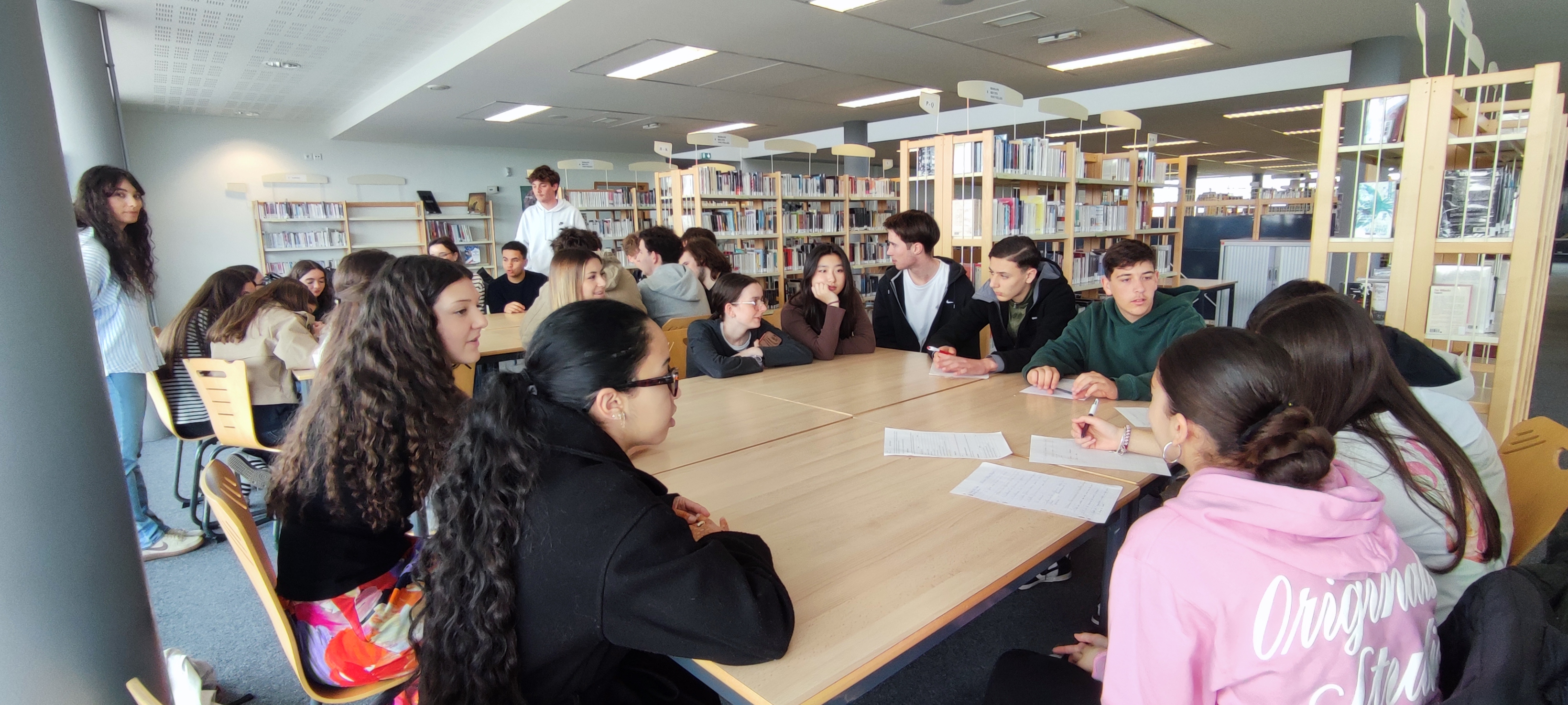 Lundi 23 mars, une classe de 3ème du collège de Fontenilles a rencontré une classe de Terminale et a pu ainsi découvrir différents aspects de leur futur établissement. Pendant deux heures, les élèves répartis en petits groupes se sont réunis autour de jeux fabriqués en Histoire et EMC par les terminales, se sont familiarisés avec le CDI à l'aide de petits questionnaires ludiques. Les 3ème ont pu également poser des questions concrètes aux terminales sur le fonctionnement du lycée, le déroulé des études et sur l'orientation. Ils ont enfin fait une petite visite de l'établissement avant de se restaurer à la cantine et rejoindre leur collège. Une rencontre riche, variée et dynamique certainement bénéfique pour tous.